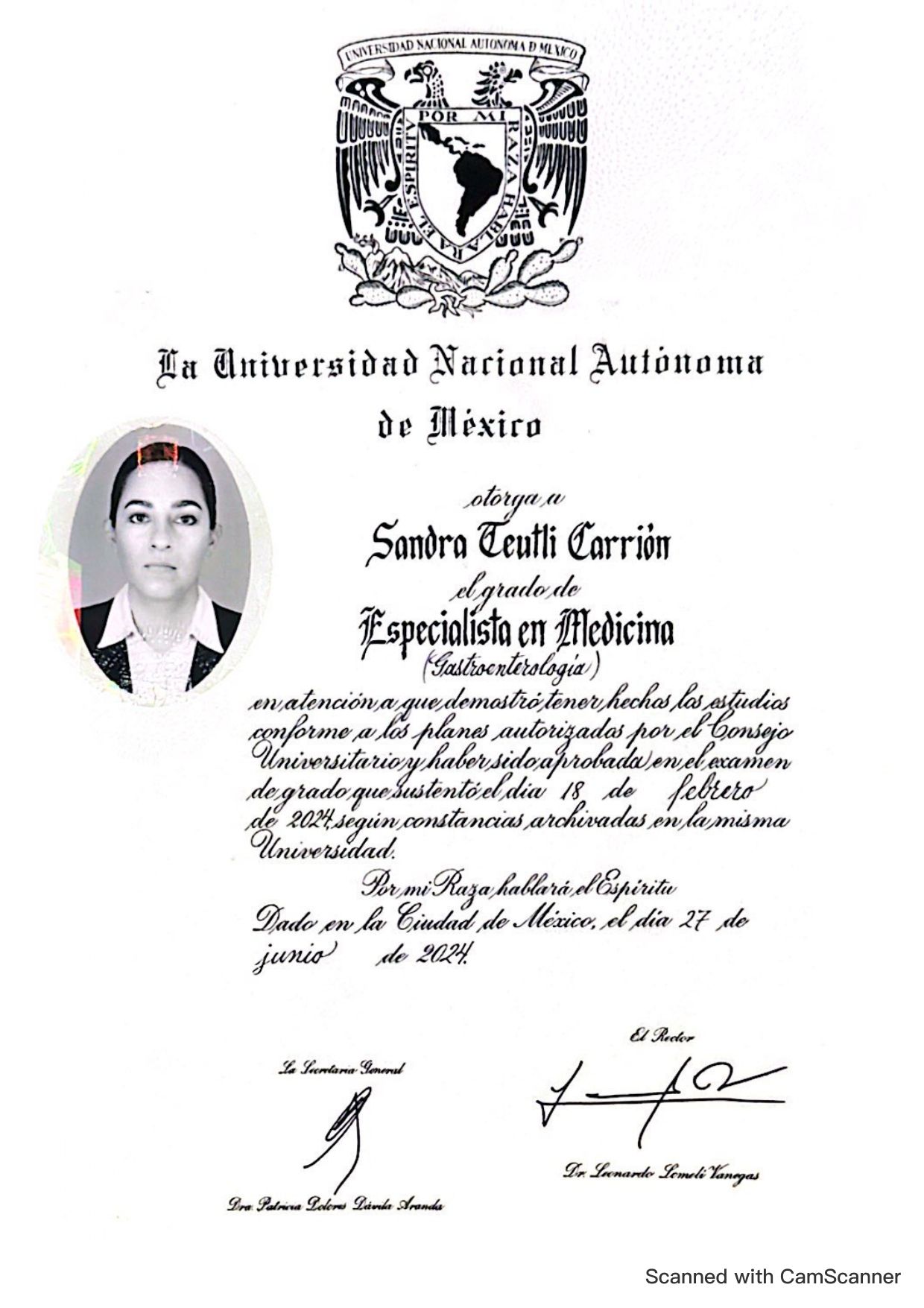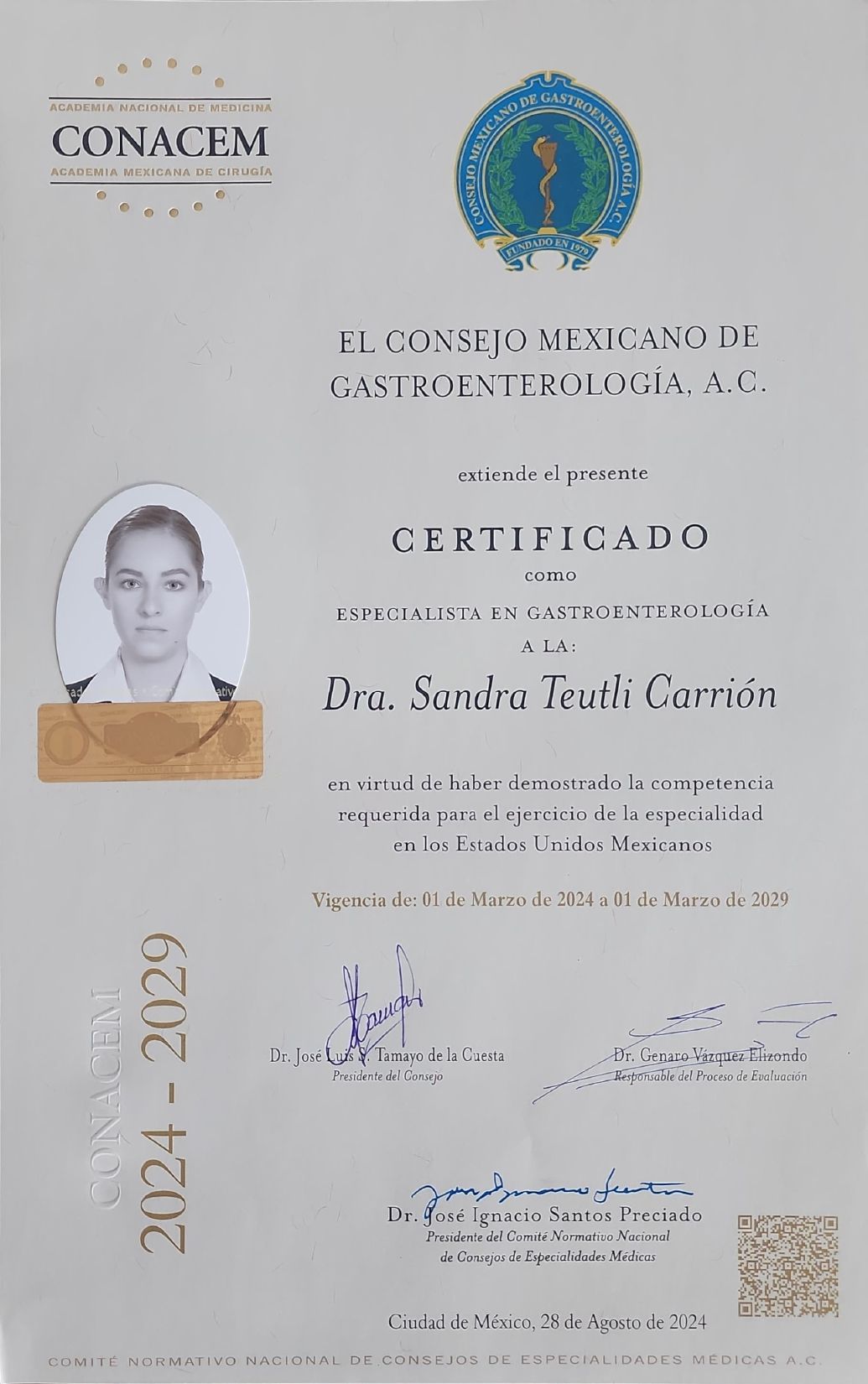 La experiencia con la Dra. Sandra] fue excepcional. Desde la primera consulta, mostró un trato exageradamente amable, cálido y detallista, haciendo sentir a mi mamá en las mejores manos. Además de ser una profesional altamente capacitada, se interesó genuinamente por su bienestar, algo que pocas veces se ve. Le realizó una colonoscopia con mucha delicadeza y dedicación, explicando cada detalle del procedimiento y los resultados de manera clara y paciente. Su interés desinteresado por mi mamá nos dejó una gratísima impresión. ¡La recomendamos ampliamente!